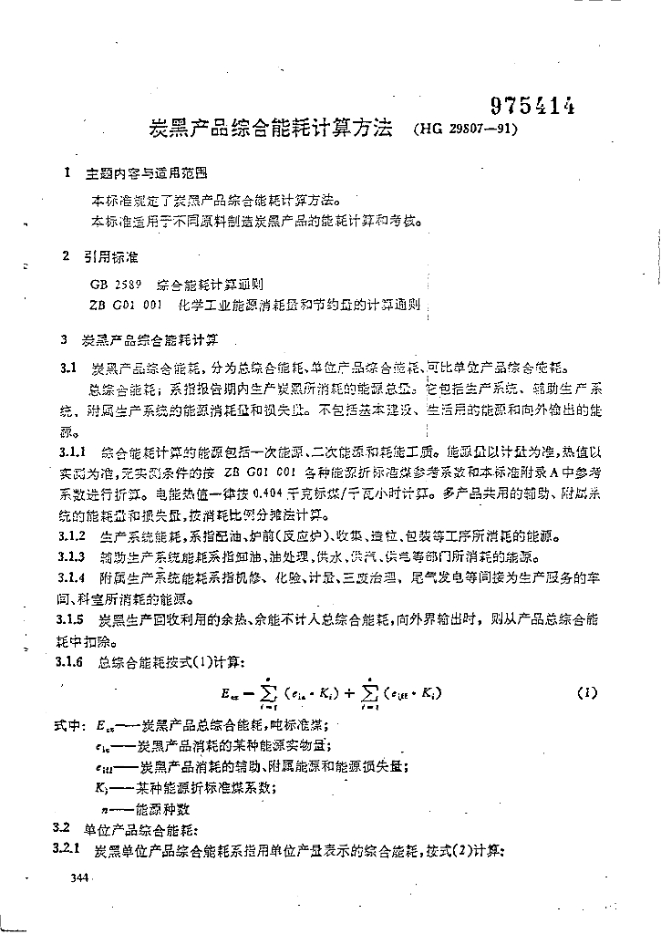 HG 29807-1991 炭黑产品综合能耗计算方法