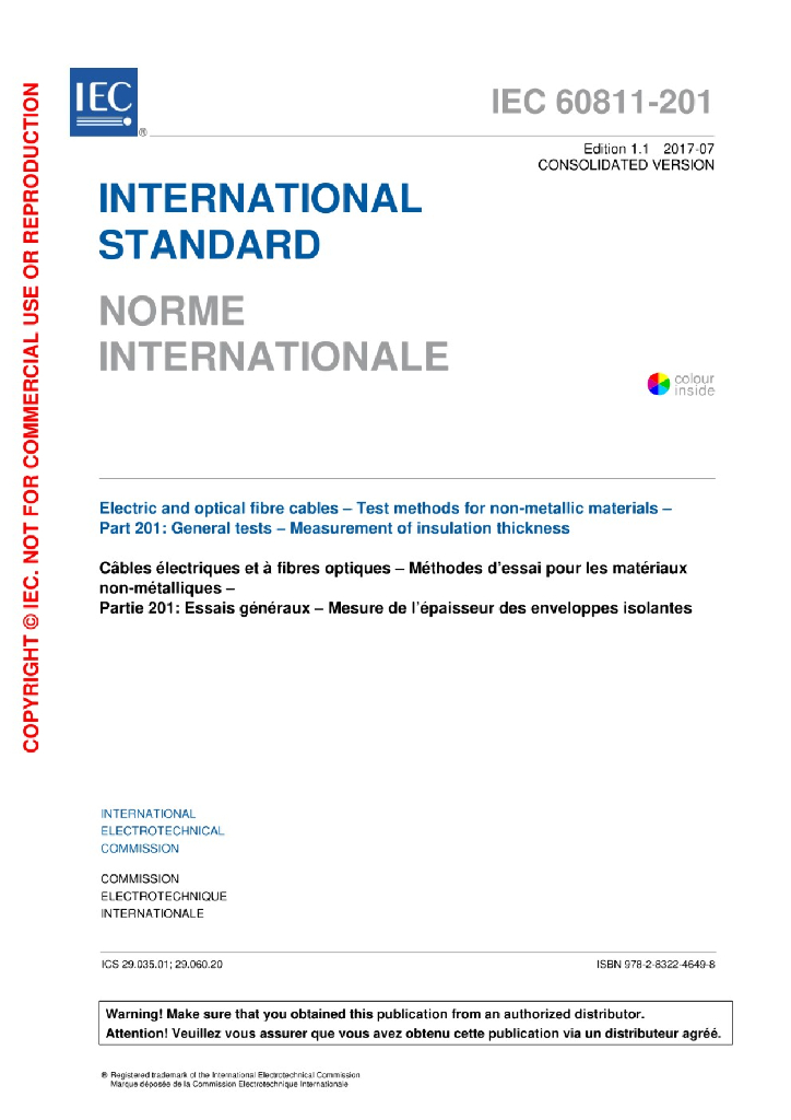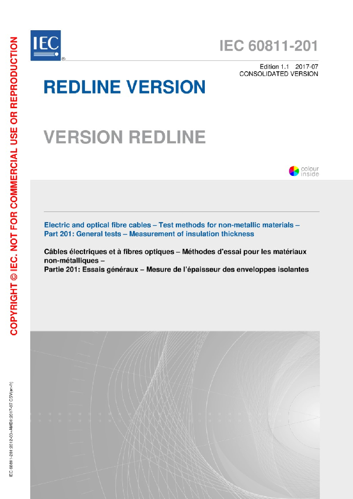 IEC 60811-201:2012+AMD1:2017 电缆和光缆 非金属材料的试验方法 第201部分:一般试验-绝缘厚度测量