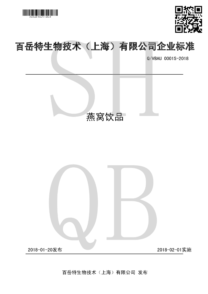 Q/VBAU 0001S-2018 燕窝饮品