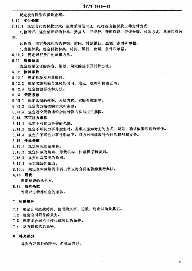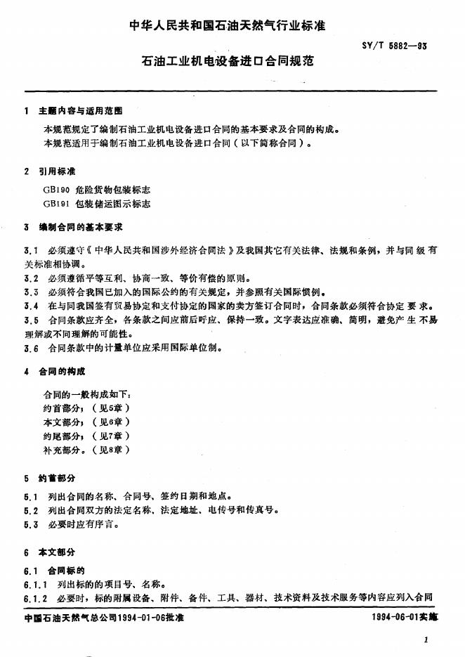 SY/T 5882-1993 石油工业机电设备进口合同规范
