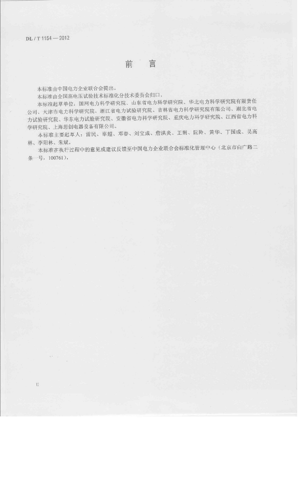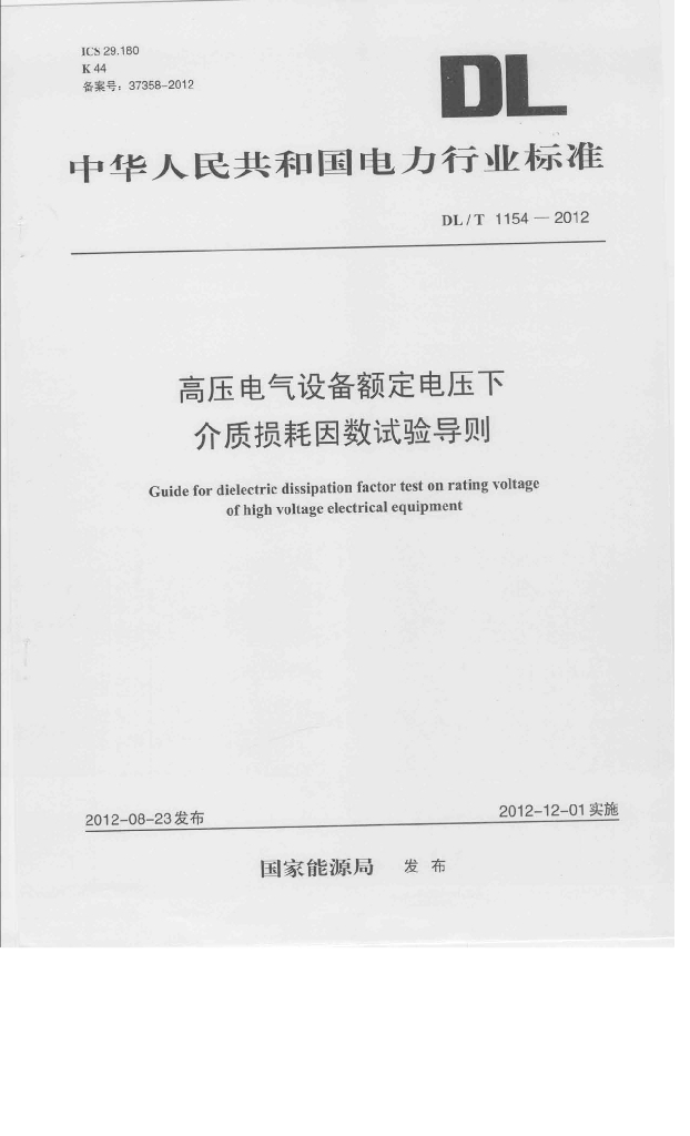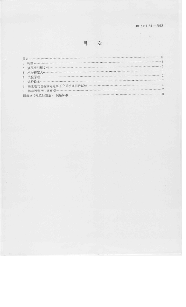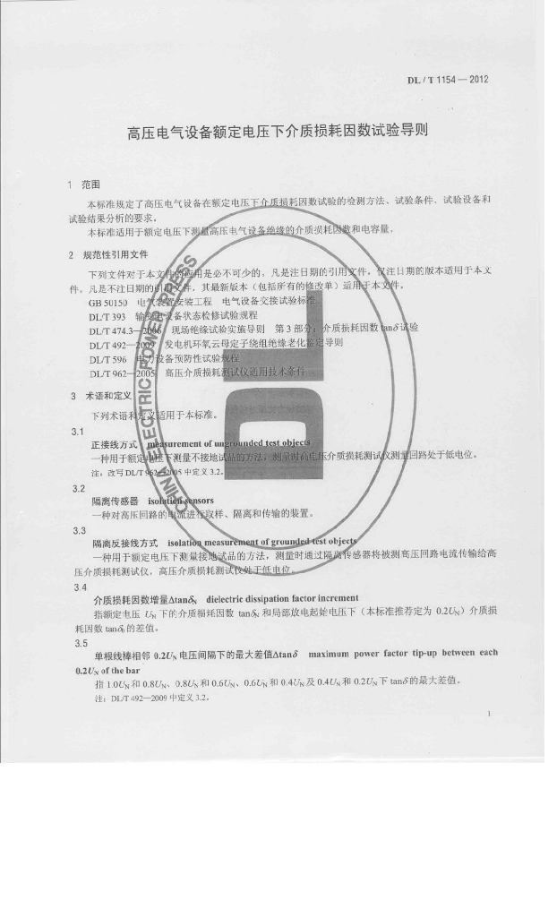 DL/T 1154-2012 高压电气设备额定电压下介质损耗因数试验导则