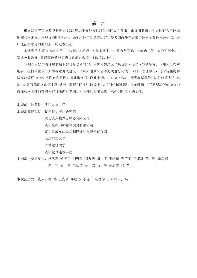 沈阳建筑大学、辽宁省标准化研究院、大连麦芽糖养老服务有限公司、沈阳泉辉国际老年康复有限公司、辽宁省城乡建设规划设计院有限责任公司、大连理工大学、吉林建筑大学、沈阳城市建设学院
