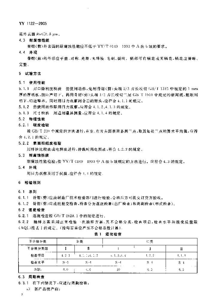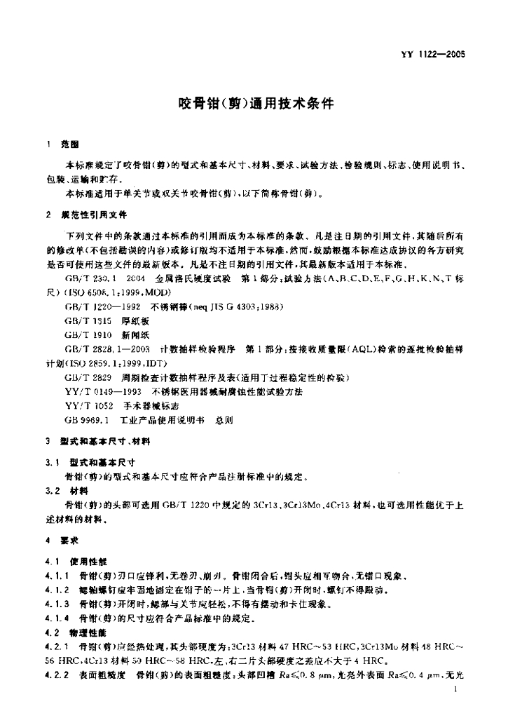 YY 1122-2005 咬骨钳(剪)通用技术条件