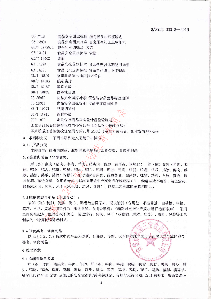 Q/XYSB 0001S-2019 畜、禽肉类制品
