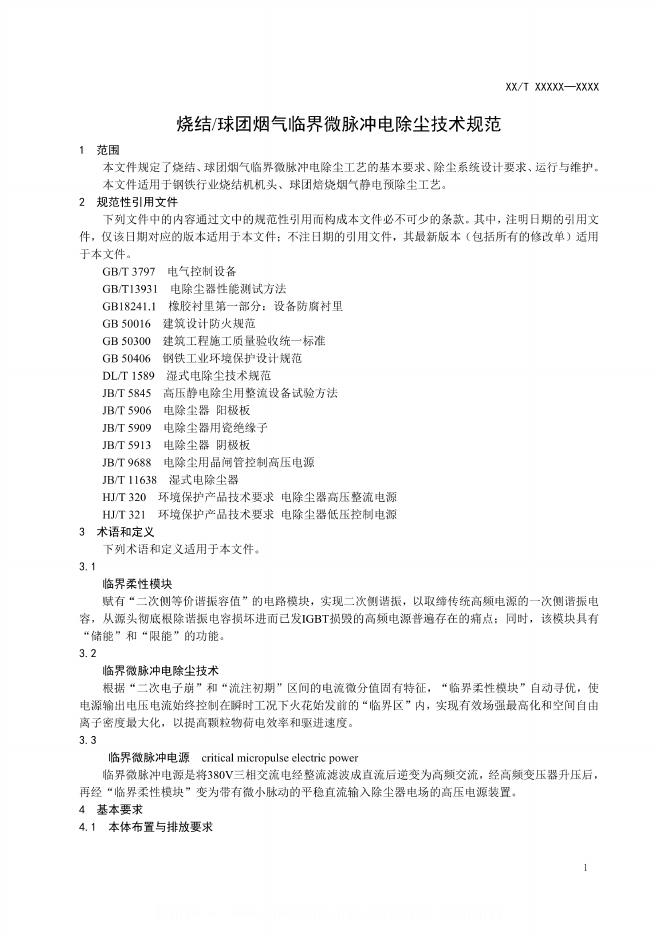 YB/T 6327-2024 烧结/球团烟气临界微脉冲电除尘技术规范