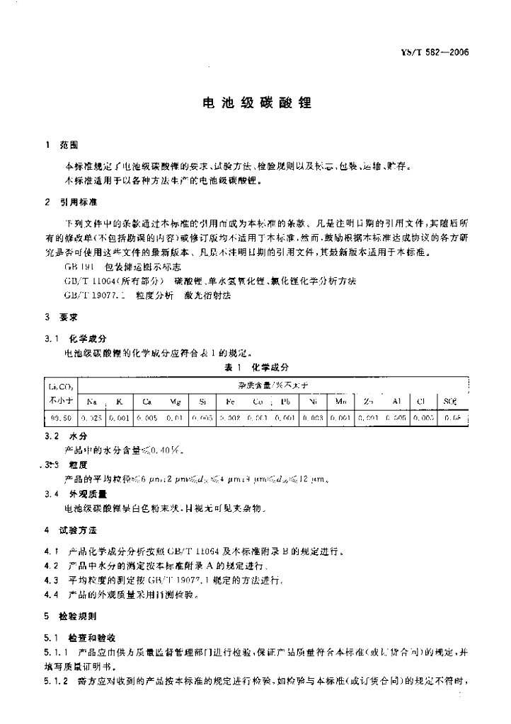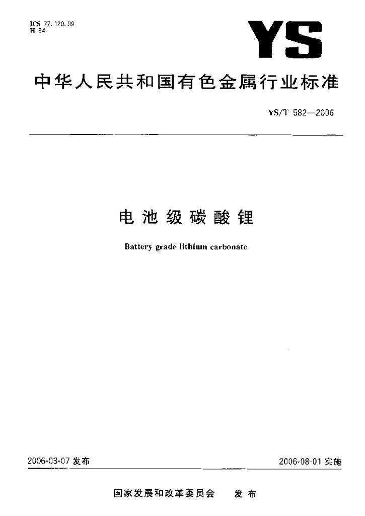 YS/T 582-2006 电池级碳酸锂
