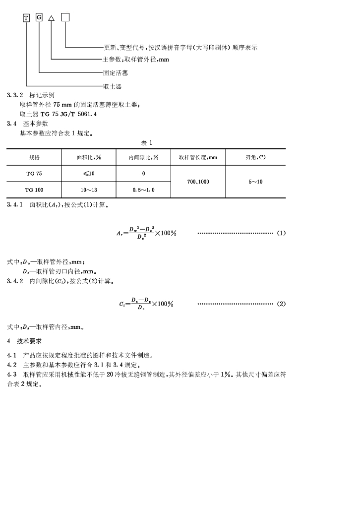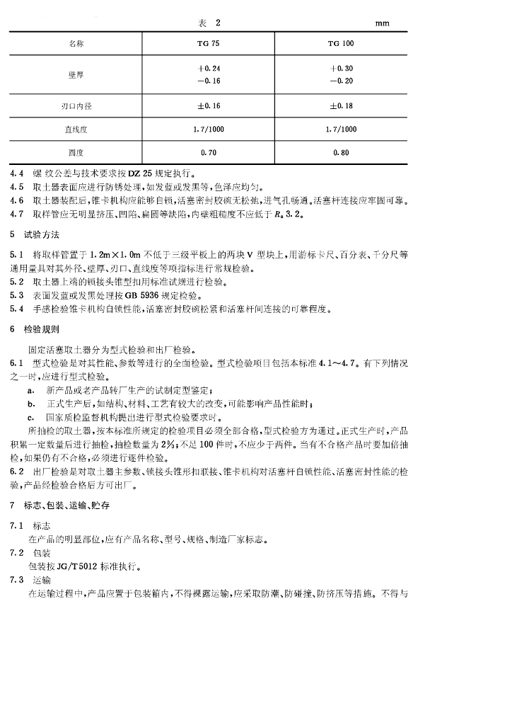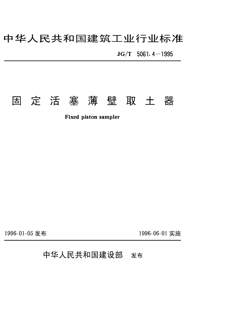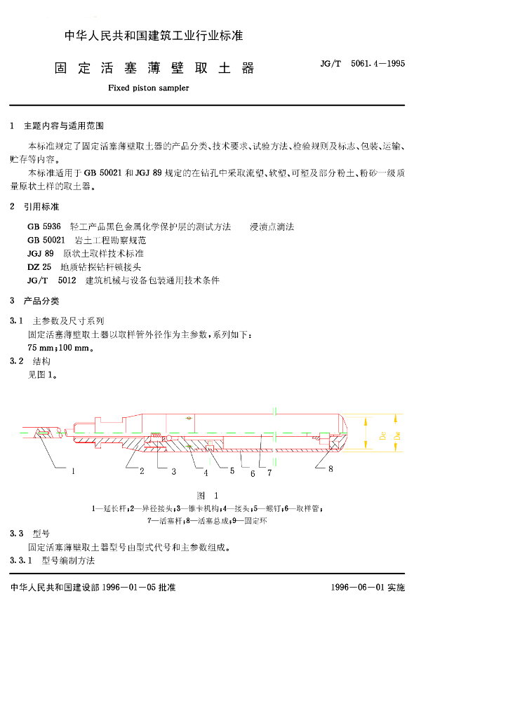 JG/T 5061.4-1995 固定活塞薄壁取土器