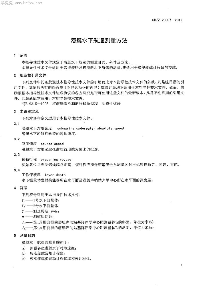 CB/Z 20007-2012 潜艇水下航速测量方法