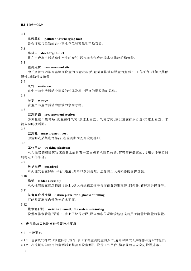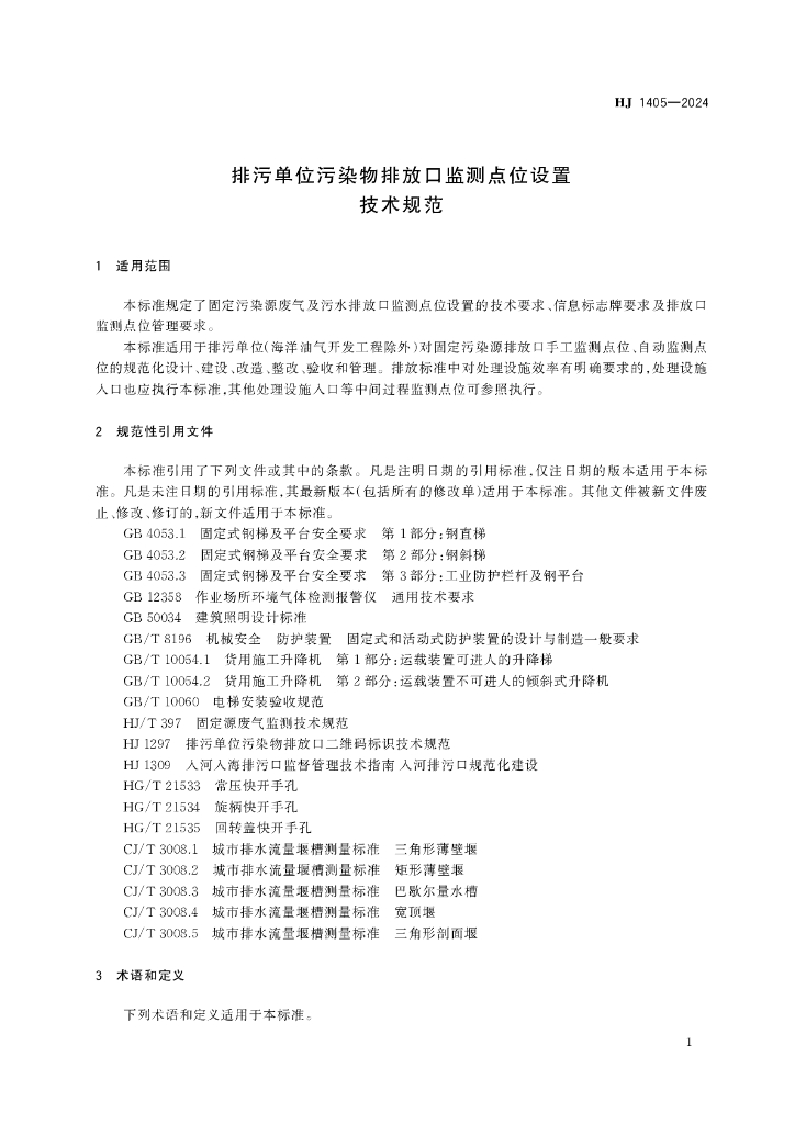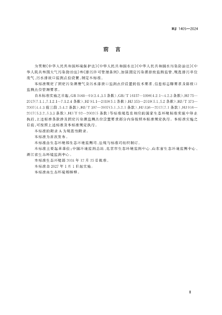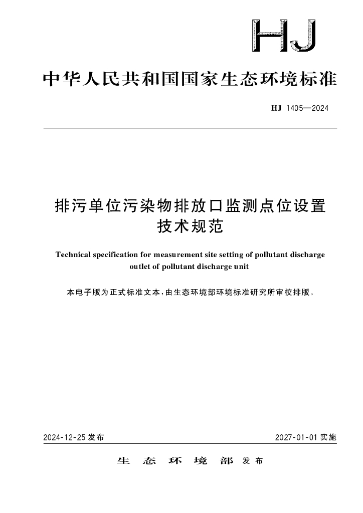 HJ 1405-2024 排污单位污染物排放口监测点位设置 技术规范