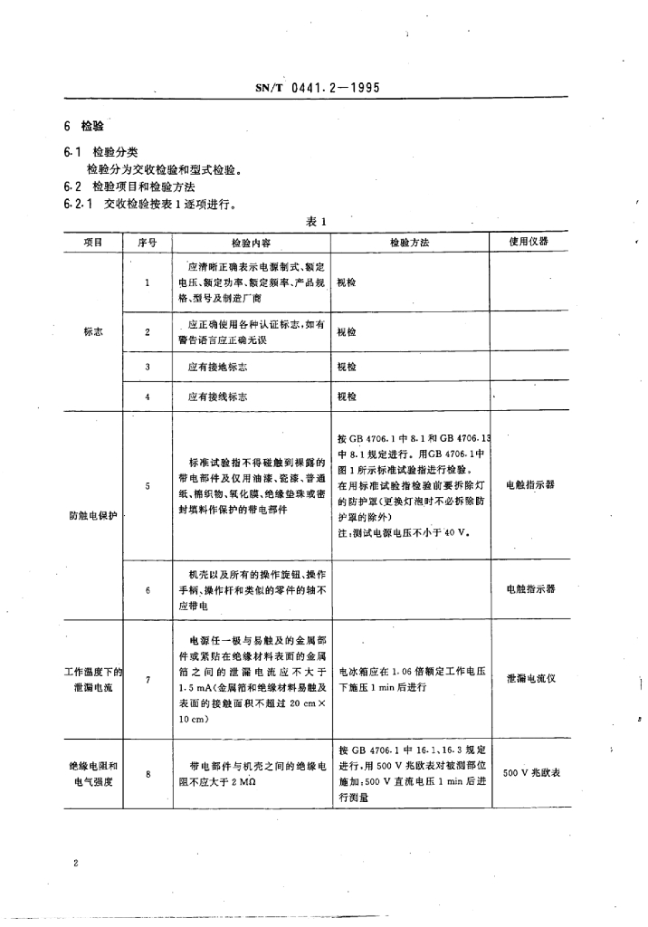 SN/T 0441.2-1995 进出口家用电冰箱和食品冷冻箱安全要求检验规程