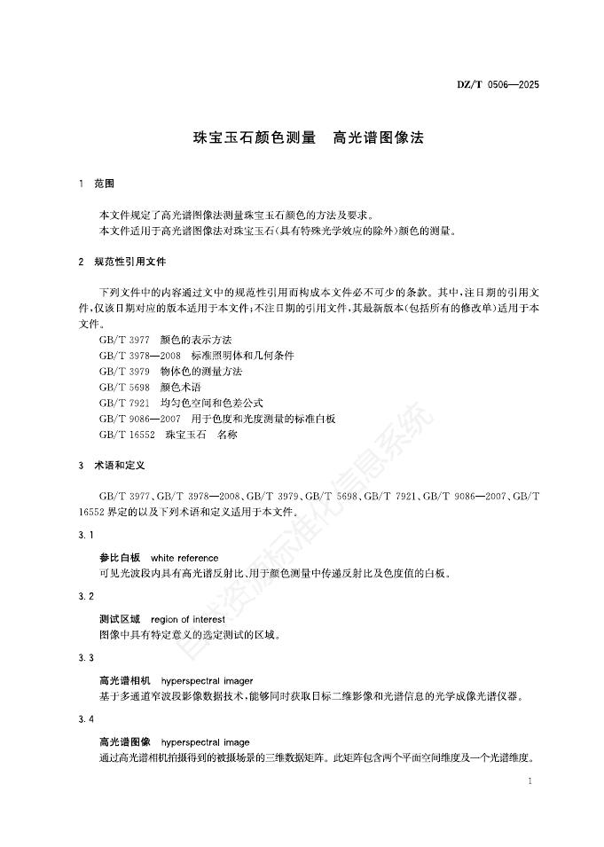 DZ/T 0506-2025 珠宝玉石颜色测量 高光谱图像法