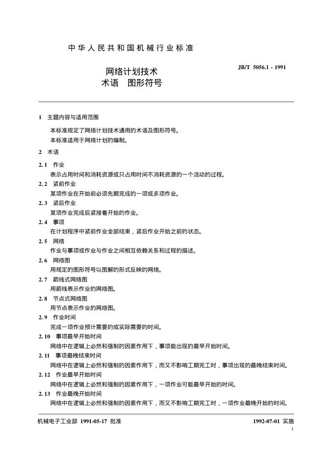 JB/T 5056.1-1991 网络计划技术 术语图形符号