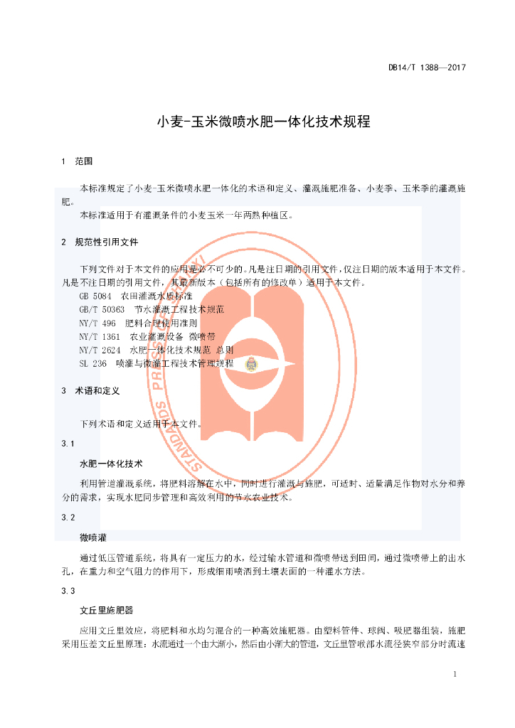 DB14/T 1388-2017 小麦-玉米微喷水肥一体化技术规程