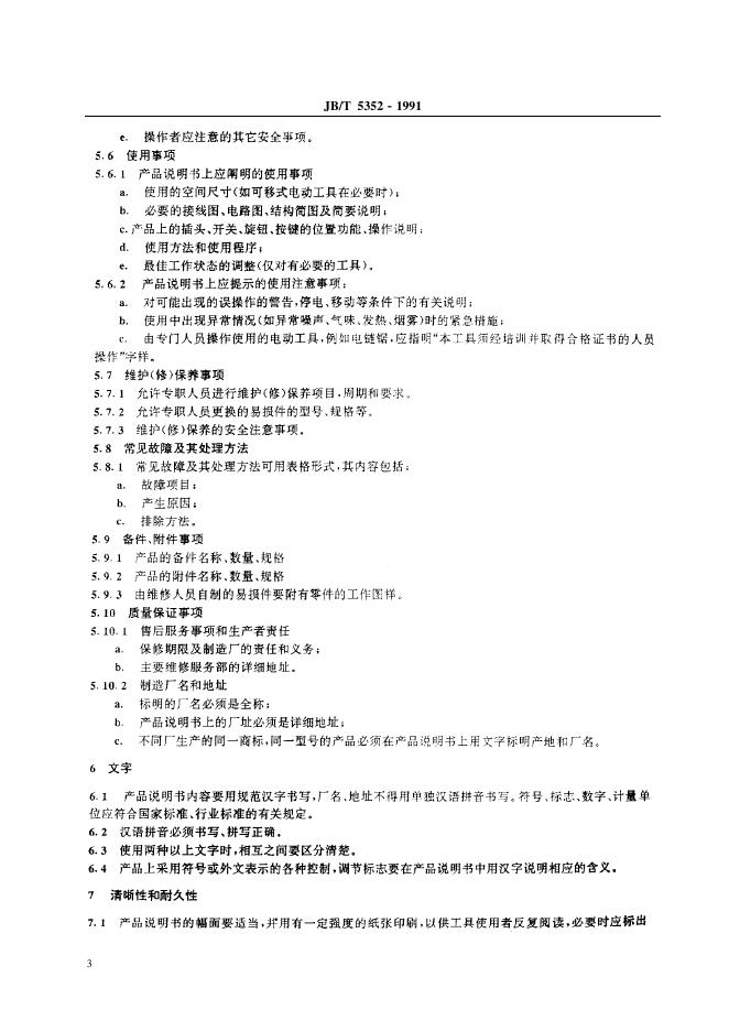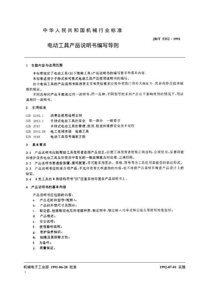 JB/T 5352-1991 电动工具 产品说明书编写导则