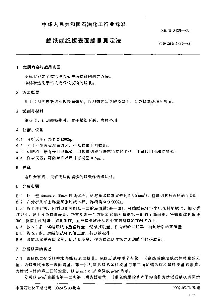 SH/T 0408-1992 蜡纸或纸板表面蜡量测定法