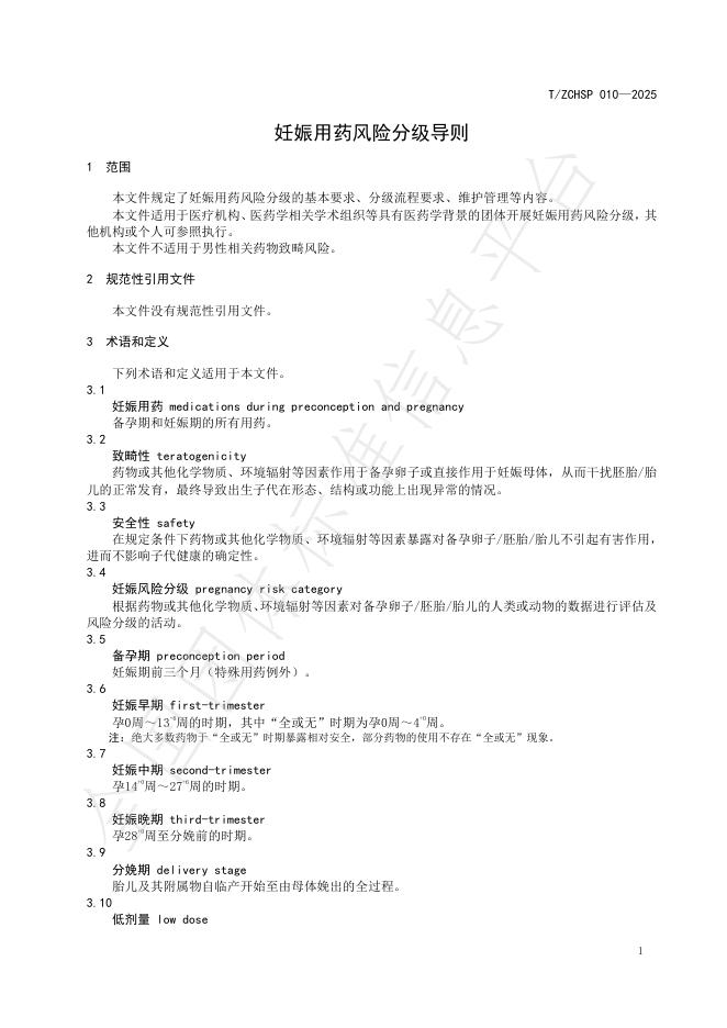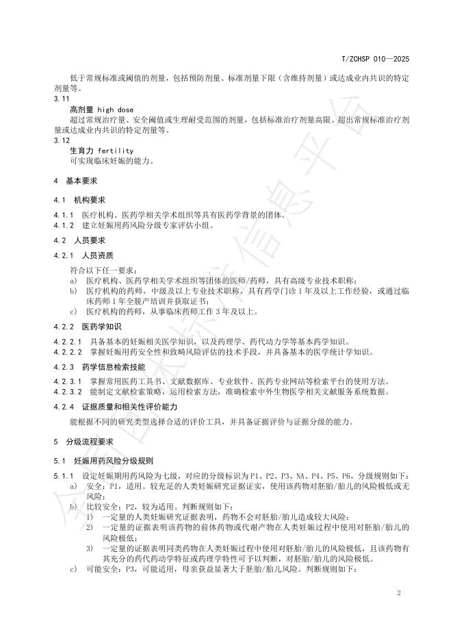 T/ZCHSP 010-2025 妊娠用药风险分级导则