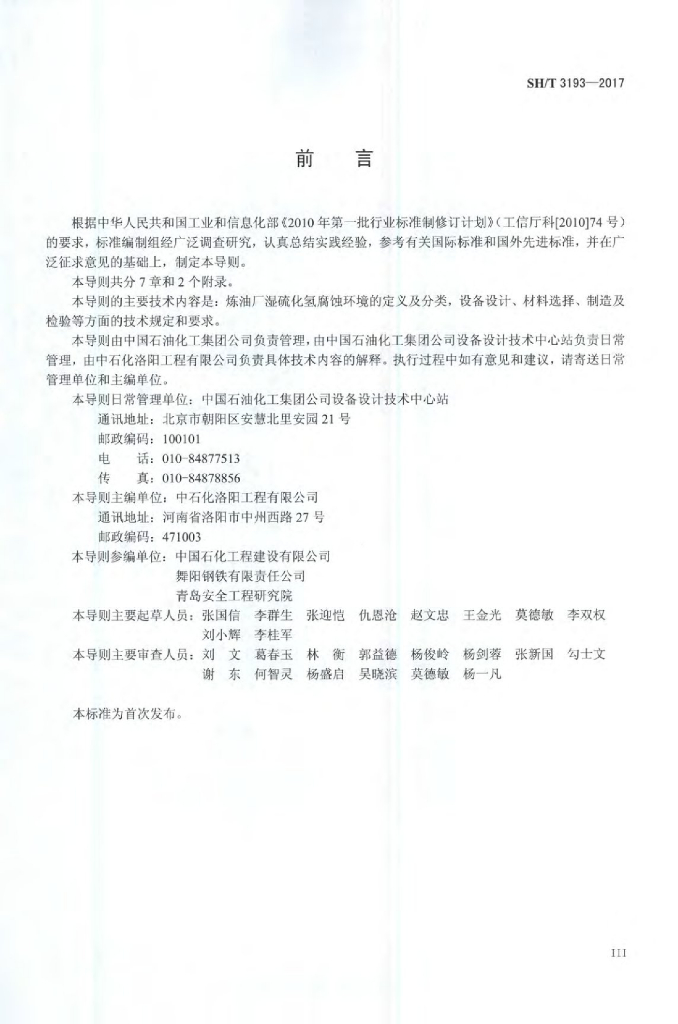 SH/T 3193-2017 石油化工湿硫化氢环境设备设计导则