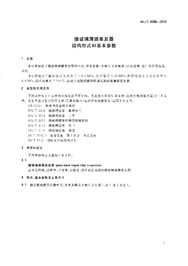 HG/T 4299-2012 搪玻璃薄膜蒸发器结构形式和基本参数