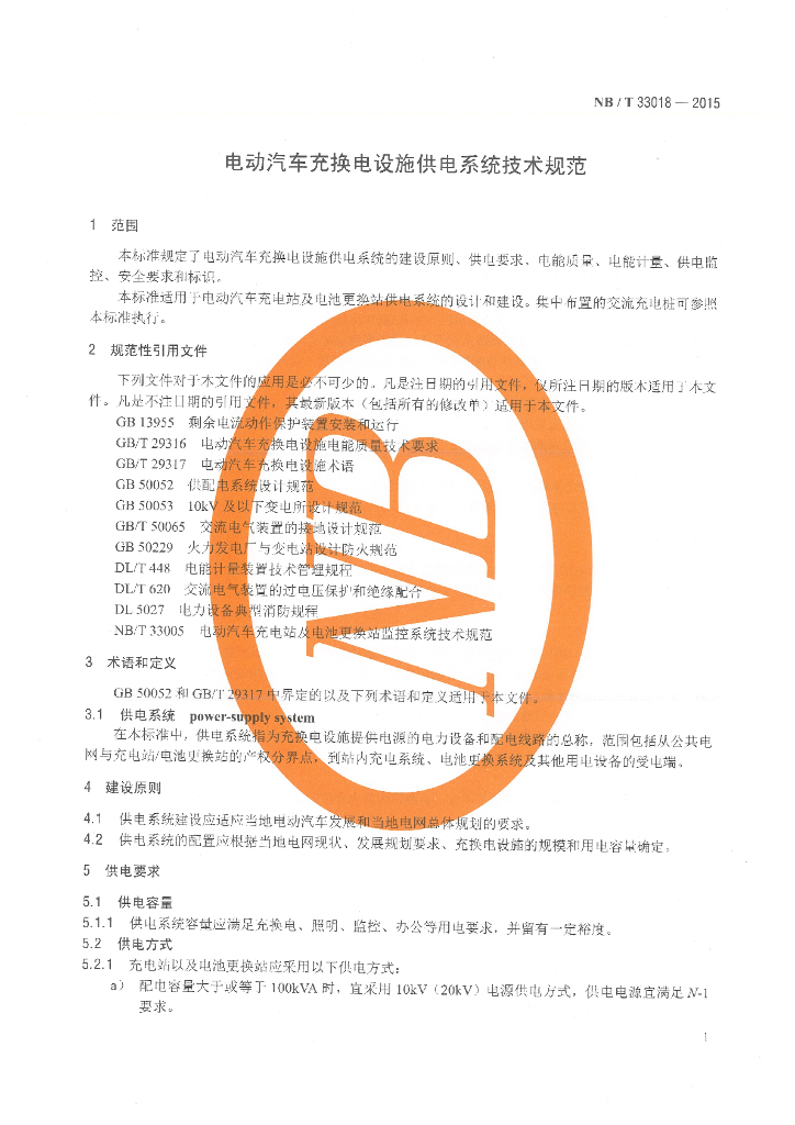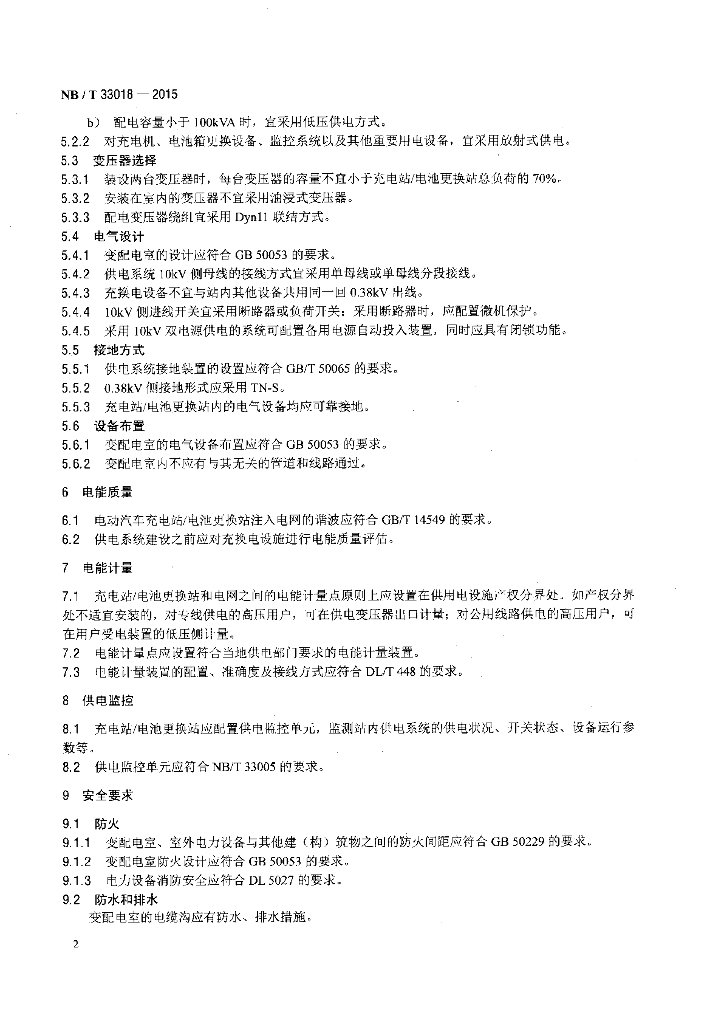 NB/T 33018-2015 电动汽车充换电设施供电系统技术规范