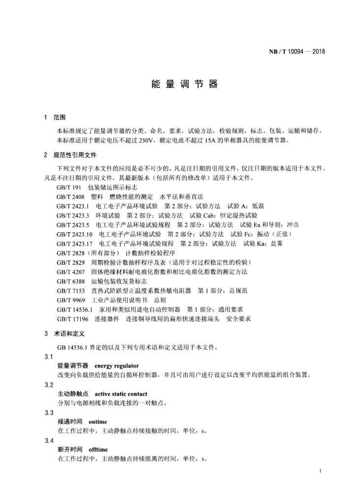 NB/T 10094-2018 能量调节器