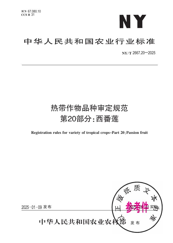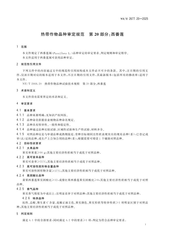 NY/T 2667.20-2025 热带作物品种审定规范 第20部分:西番莲
