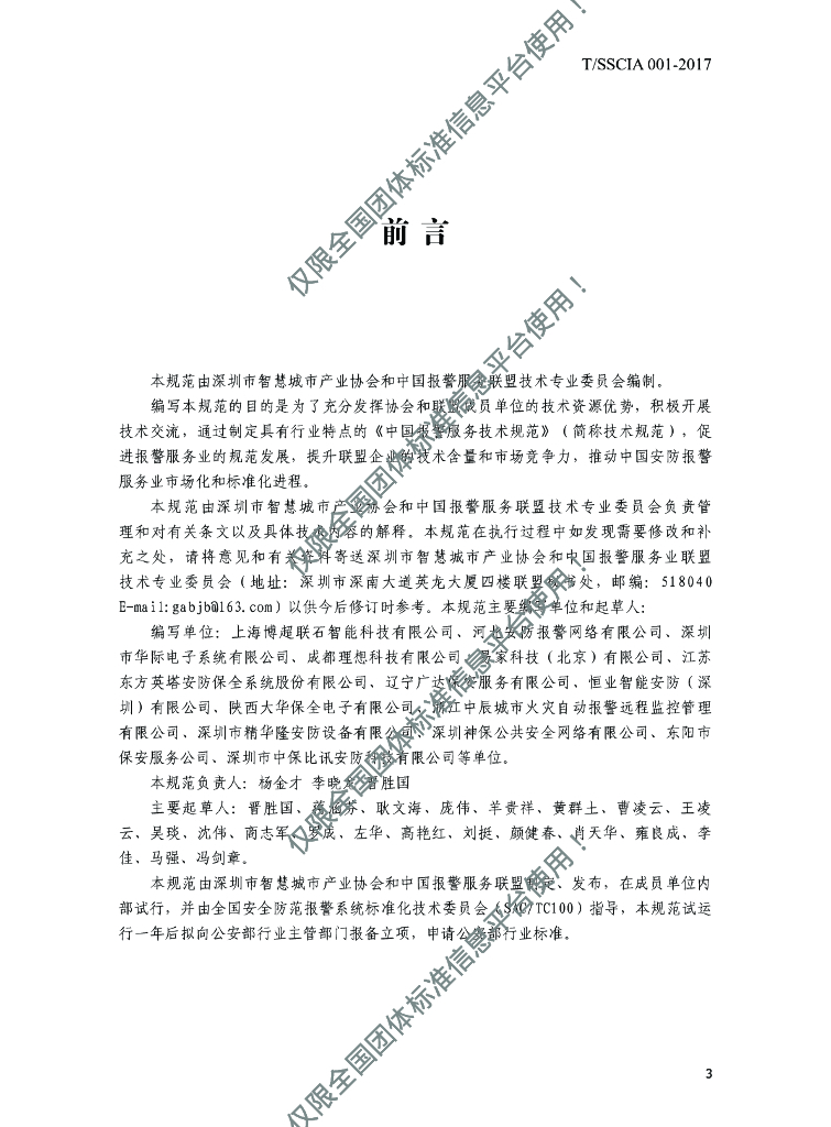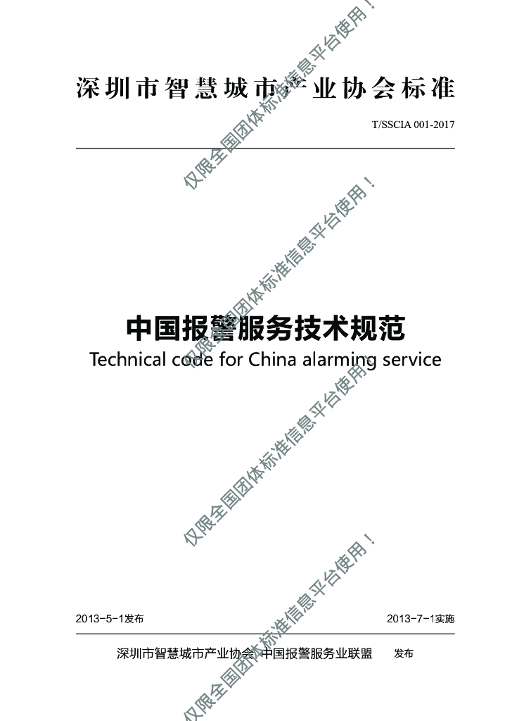 T/SSCIA 001-2017 中国报警服务技术规范