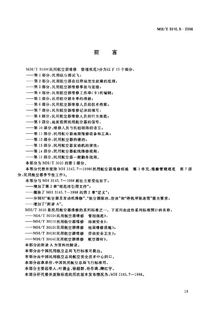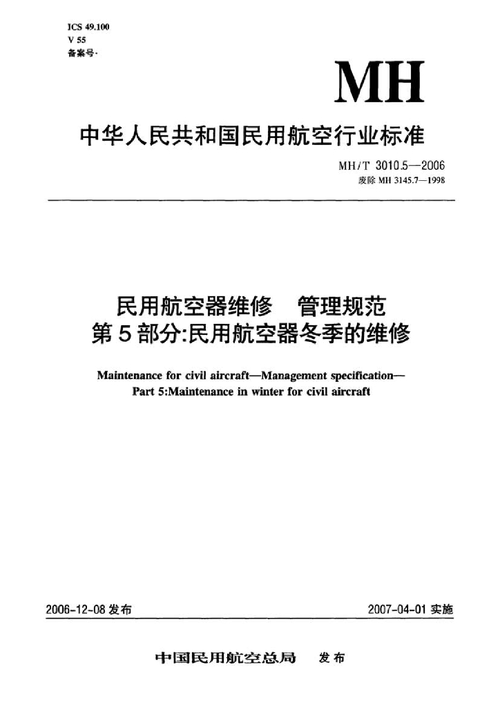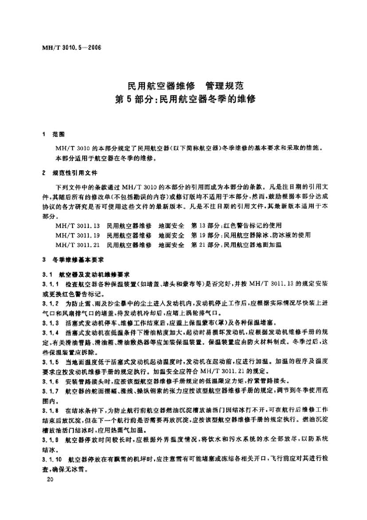 MH/T 3010.5-2006 民用航空器维修管理规范 第5部分:民用航空器冬季的维修