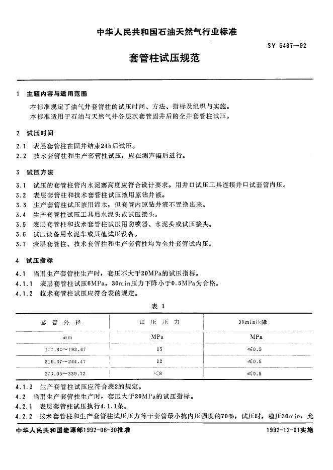 SY 5467-1992 套管柱式压规范