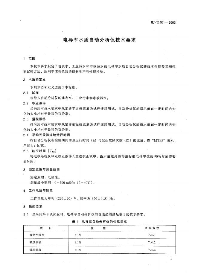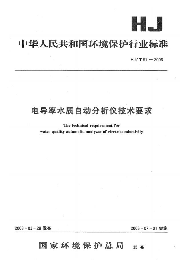 HJ/T 97-2003 电导率水质自动分析仪技术要求