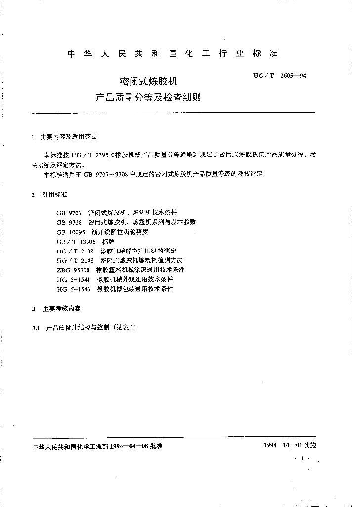 HG/T 2605-1994 密封式炼胶机产品质量分等及检查细则