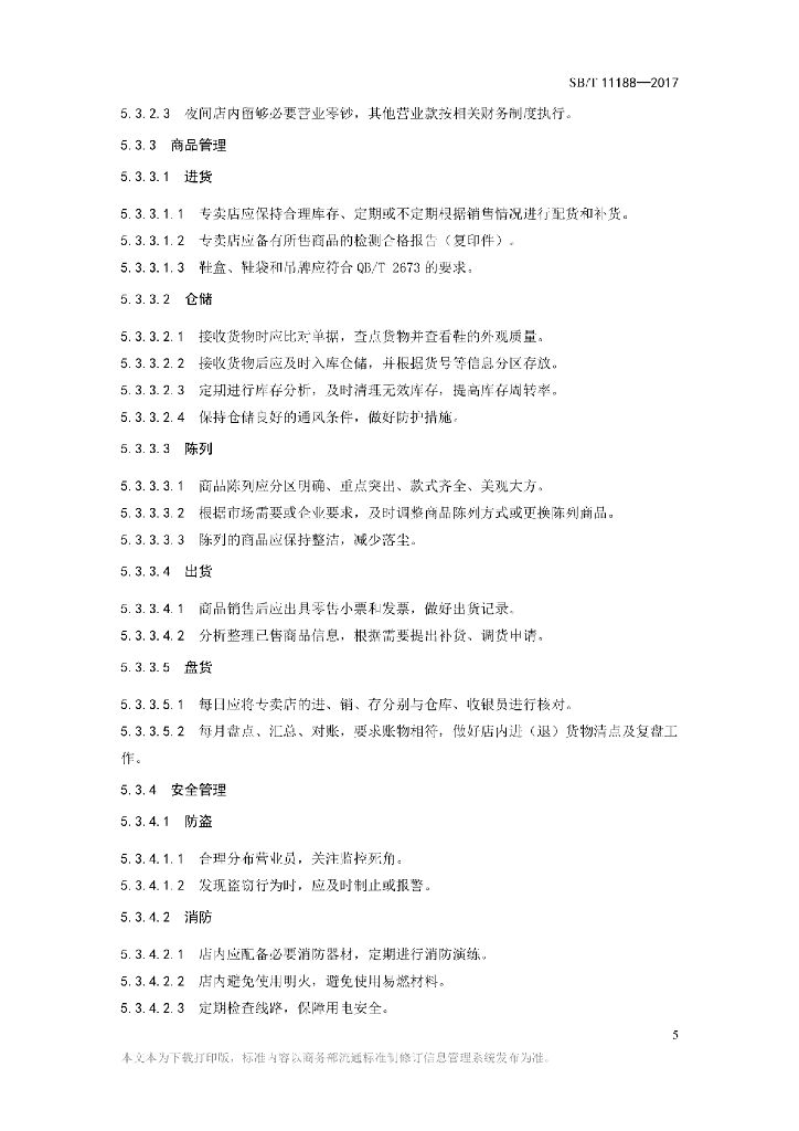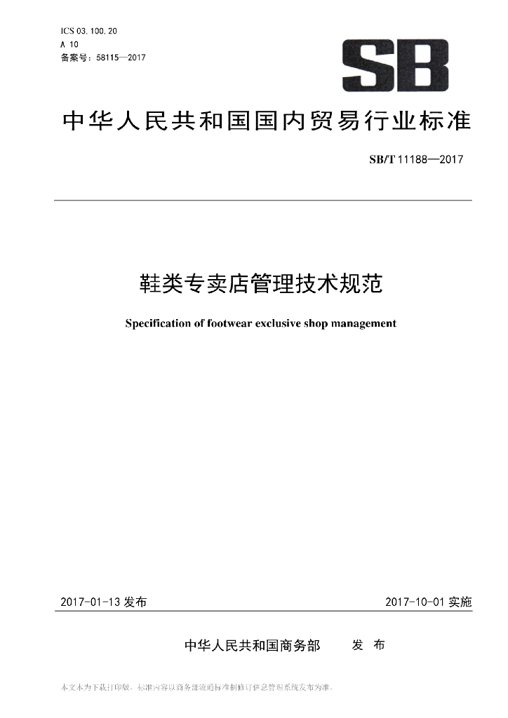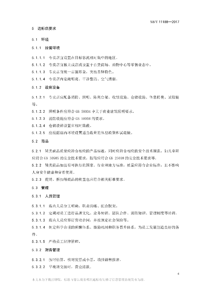 SB/T 11188-2017 鞋类专卖店管理技术规范