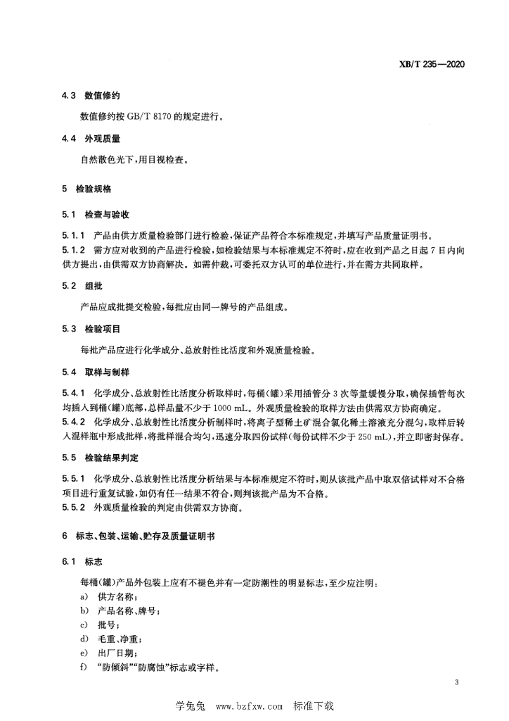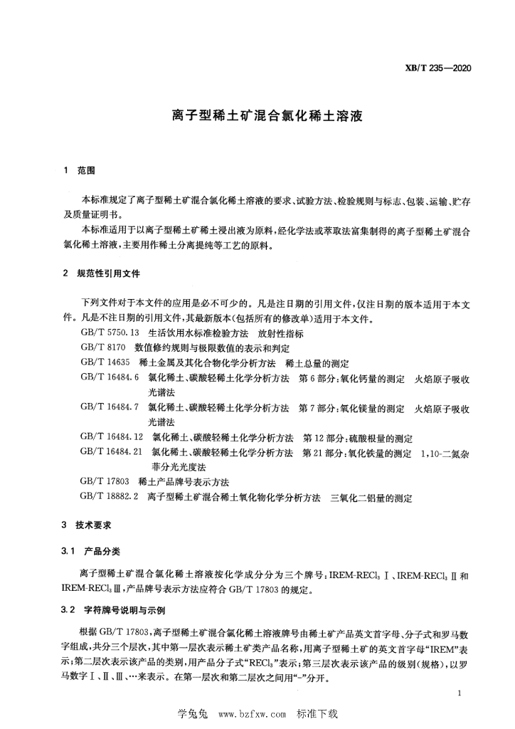 XB/T 235-2020 离子型稀土矿混合氯化稀土溶液