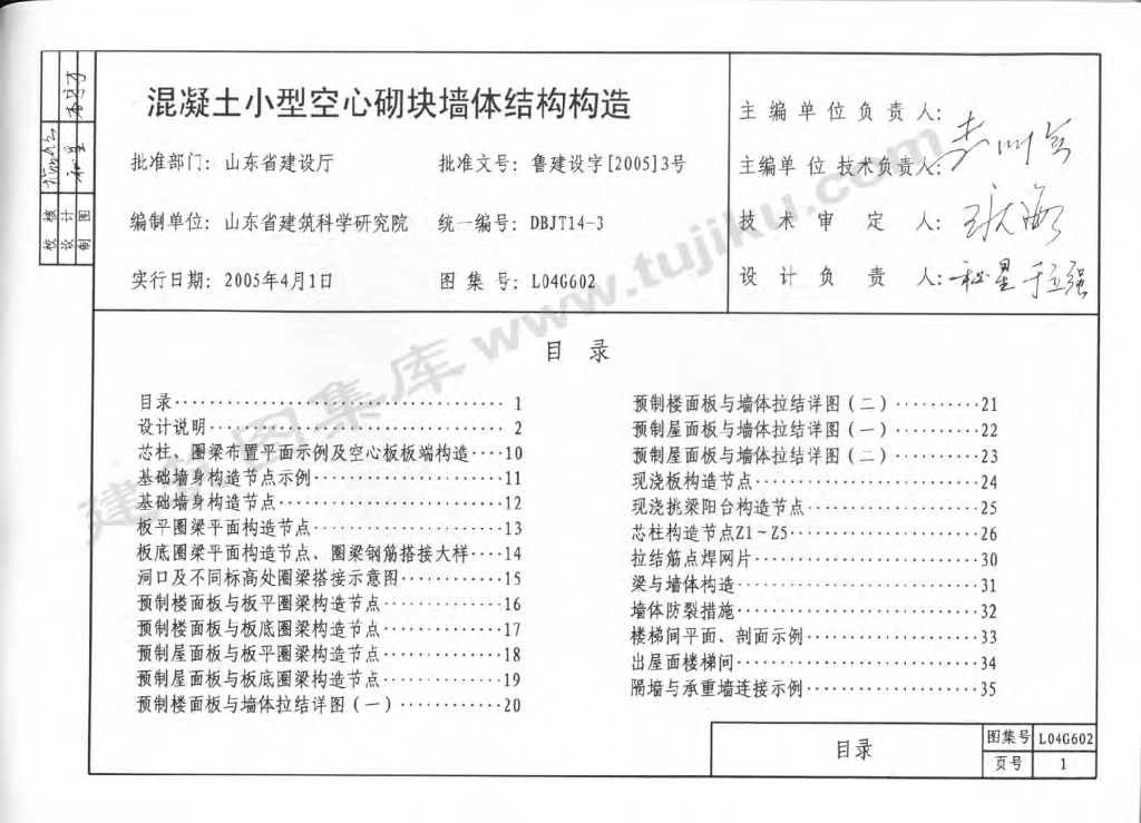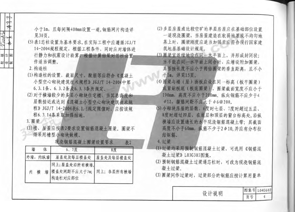 L04G602 混凝土小型空心砌块墙体结构构造图集