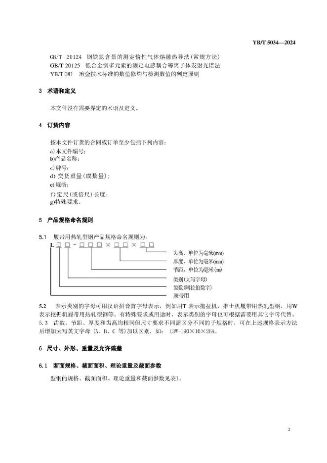 YB/T 5034-2024 履带用热轧型钢