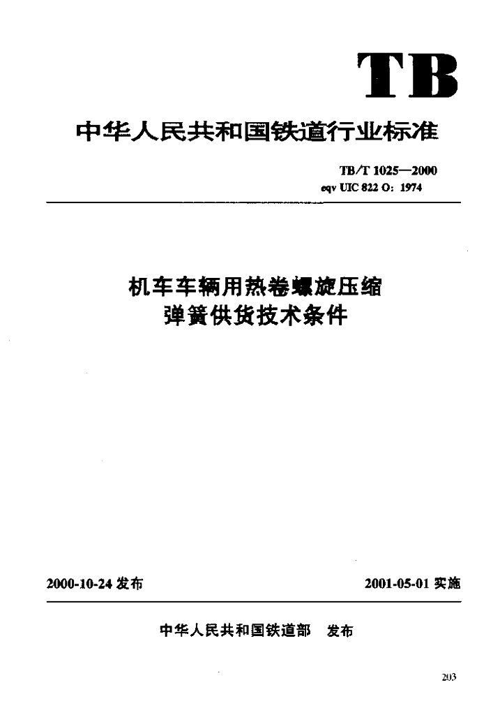 TB/T 1025-2000 机车车辆用热卷螺旋压缩弹簧供货技术条件