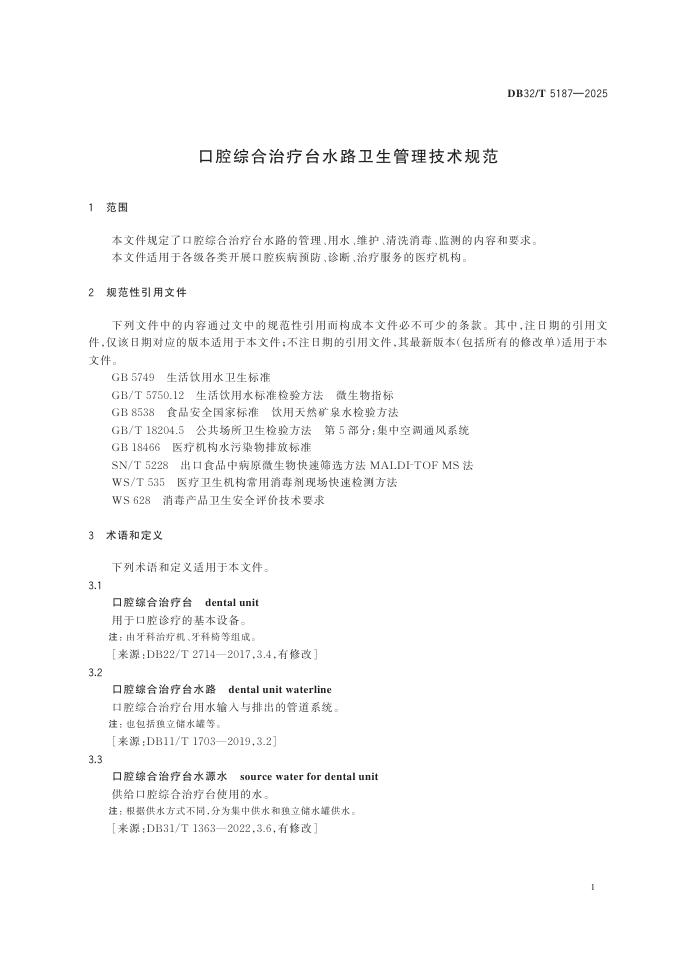 DB32/T 5187-2025 口腔综合治疗台水路卫生管理技术规范