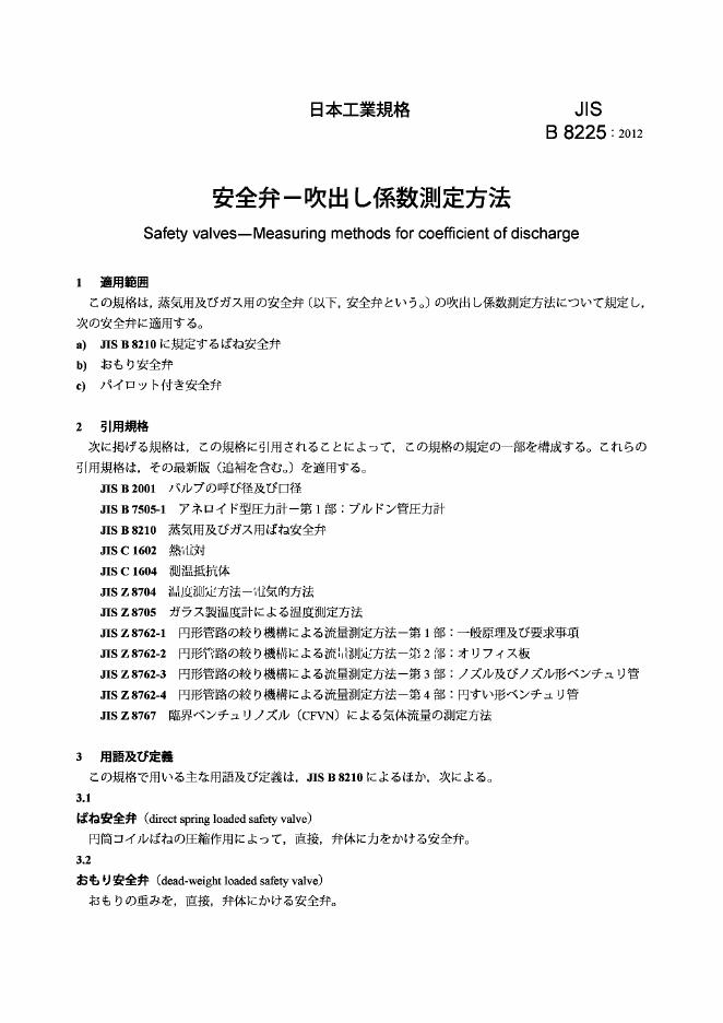 JIS B8225-2012 安全阀.排放系数的测定方法