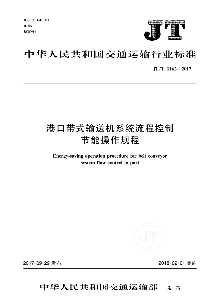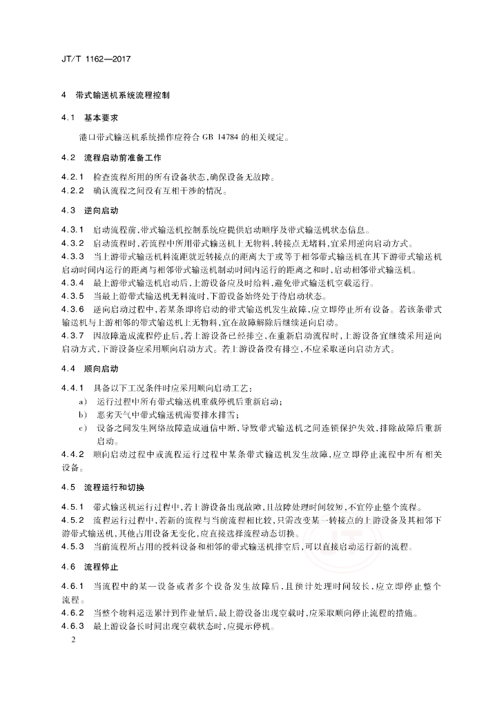 JT/T 1162-2017 港口带式输送机系统流程控制节能操作规程
