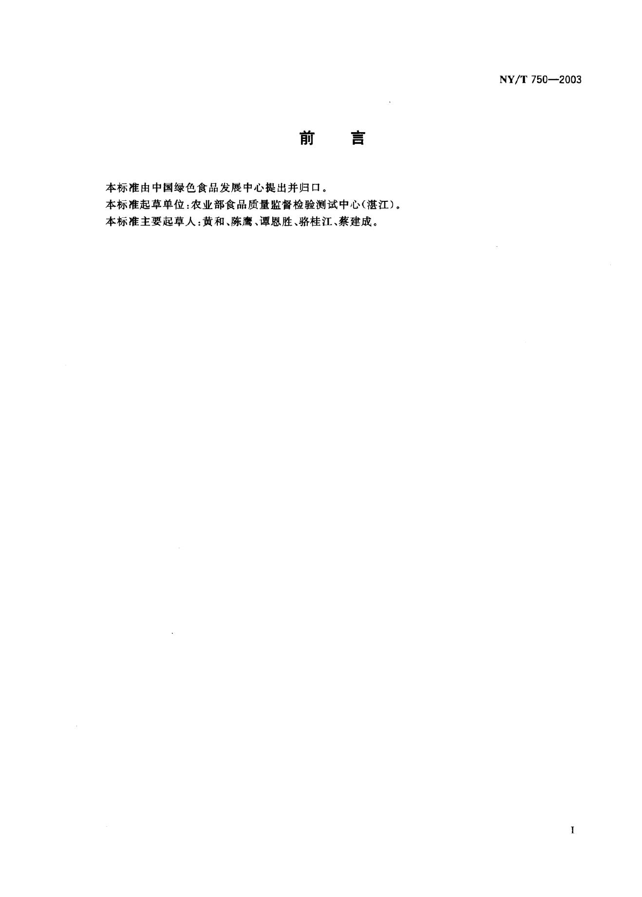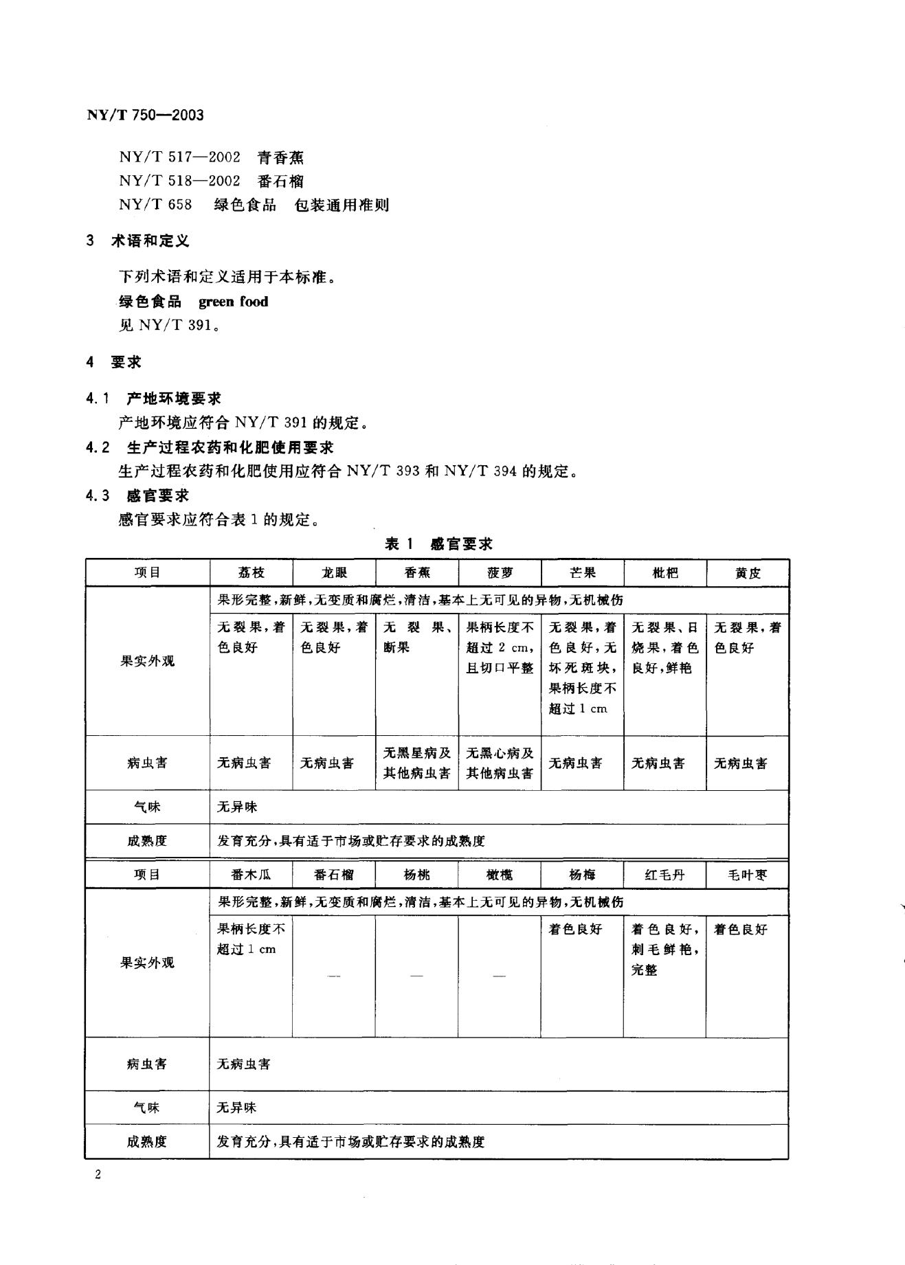 NY/T 750-2003 绿色食品 热带、亚热带水果