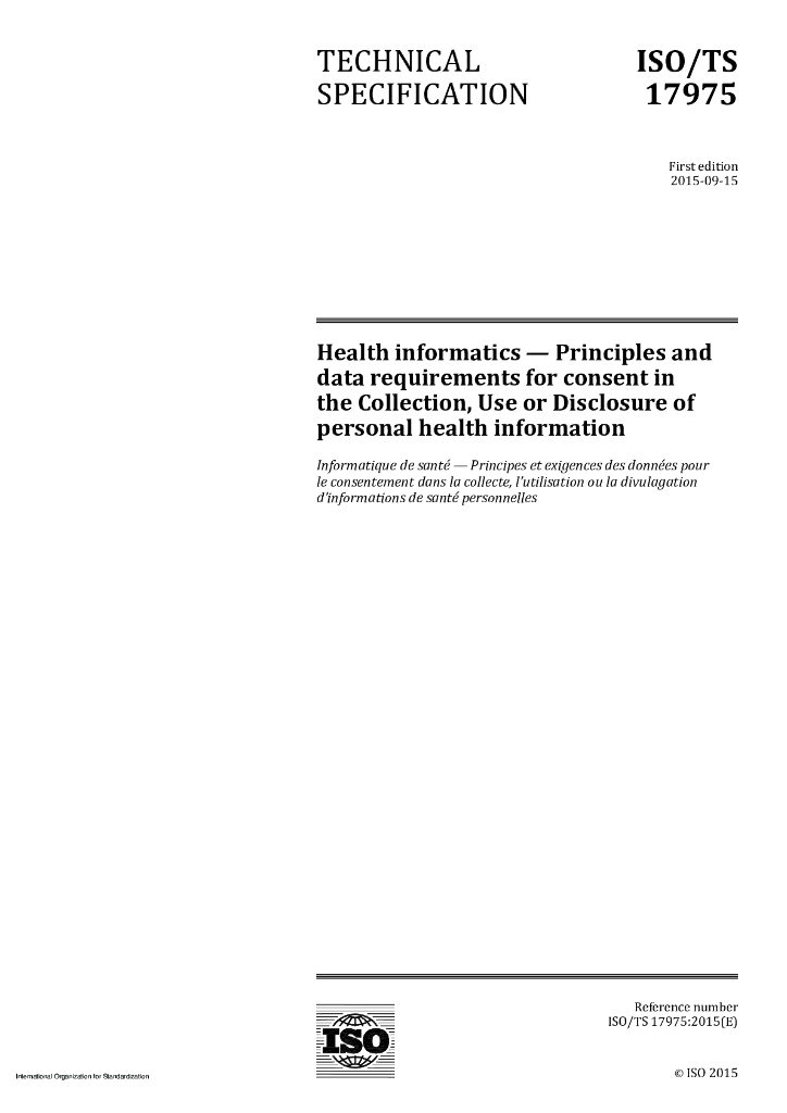 ISO/TS 17975-2015 保健信息学 个人健康信息收集、使用或披露中的许可原则和数据要求