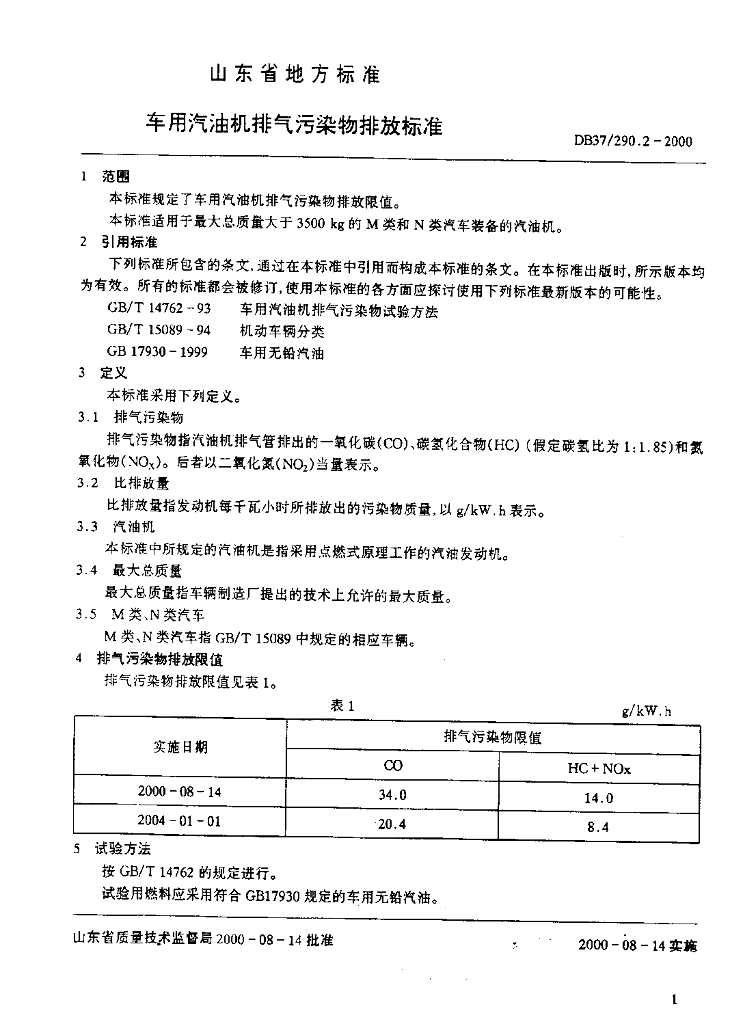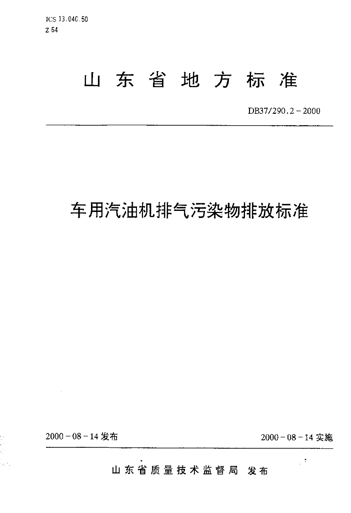 DB37/ 290.2-2000 车用汽油机排气污染物排放标准