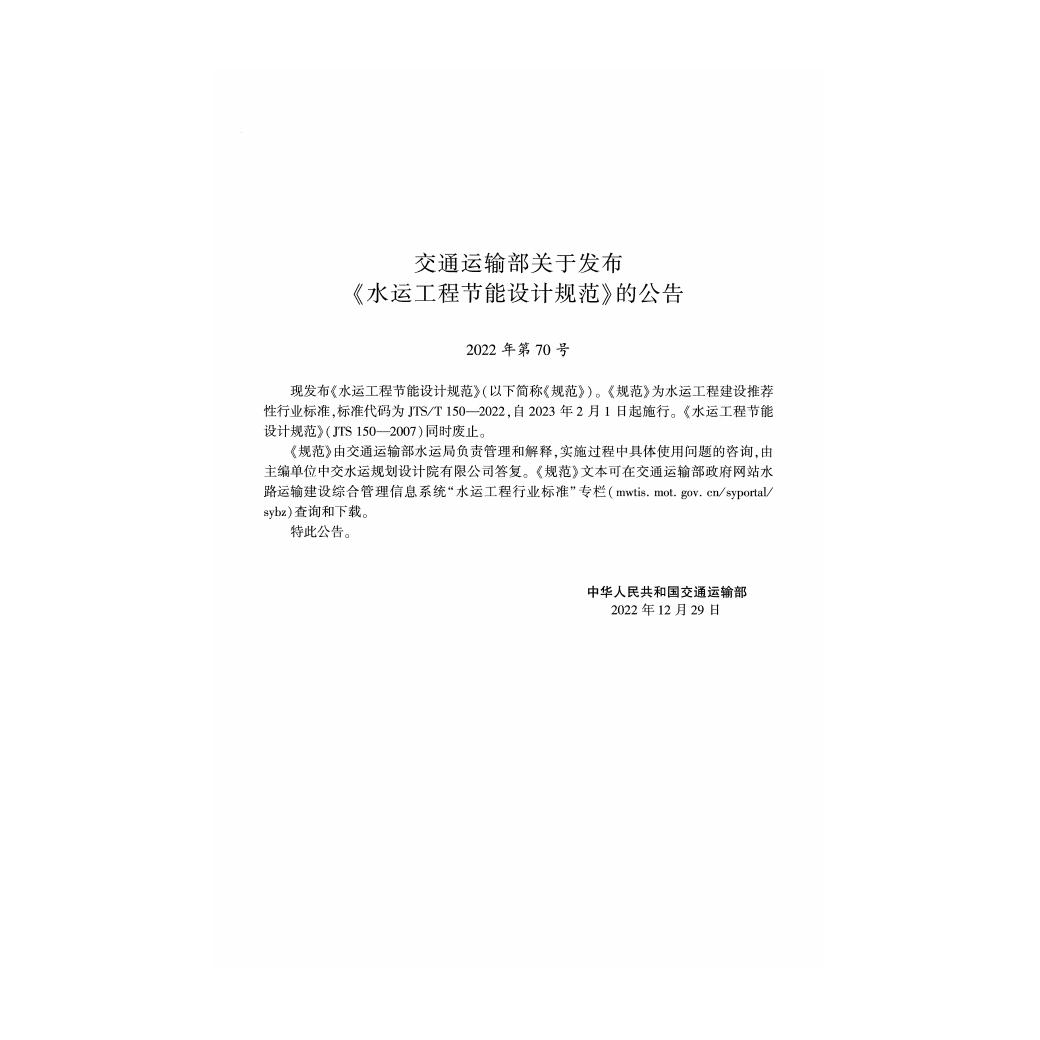 JTS/T 150-2022 水运工程节能设计规范(附条文说明)