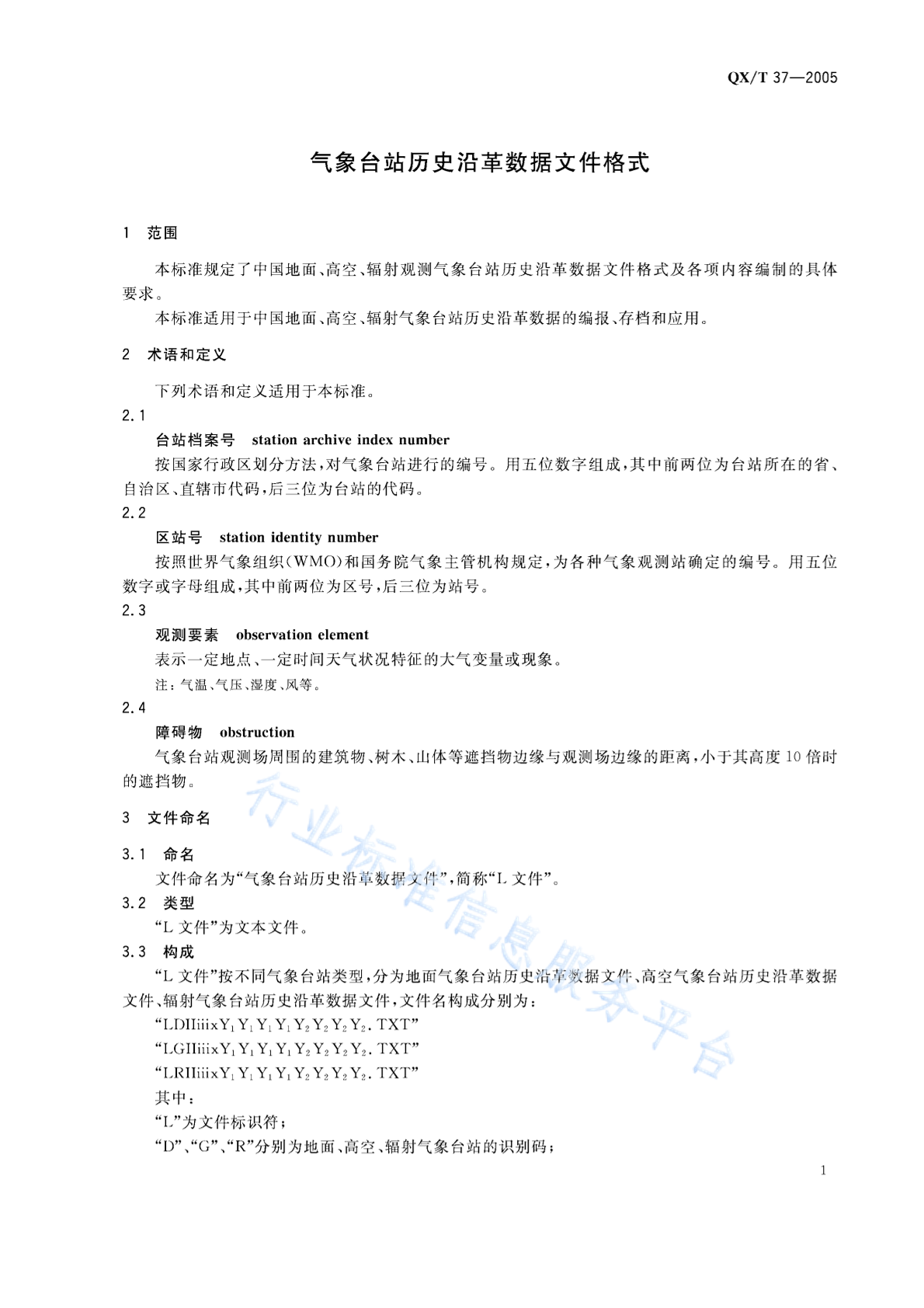 QX/T 37-2005 气象台站历史沿革数据文件格式