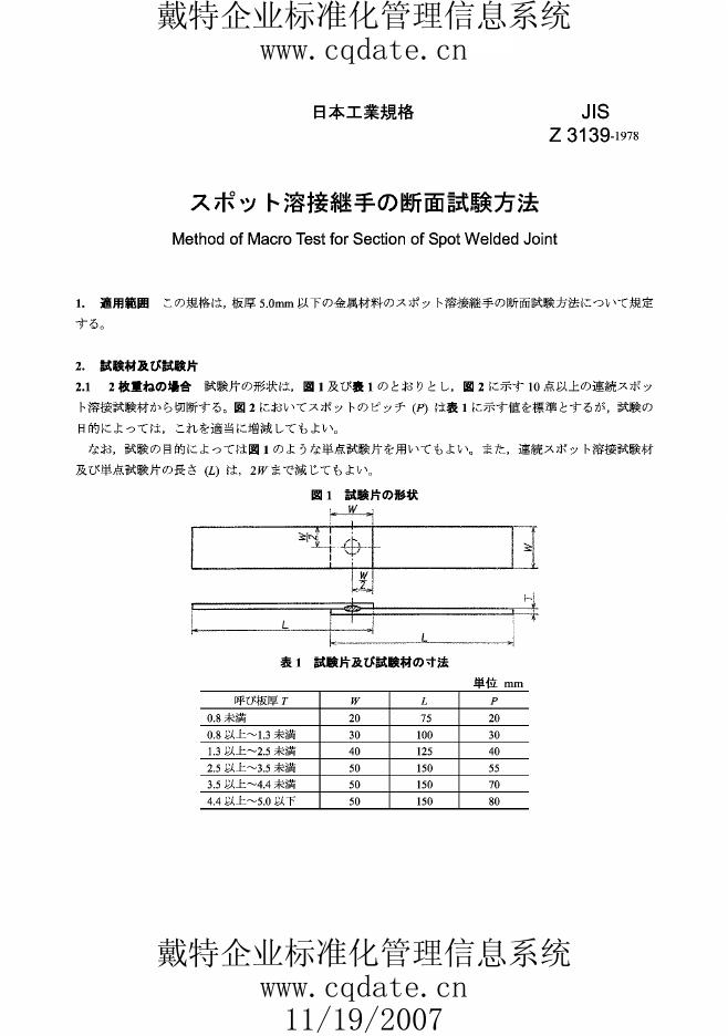 JIS Z3139-1978 点焊接头截面肉眼检测方法