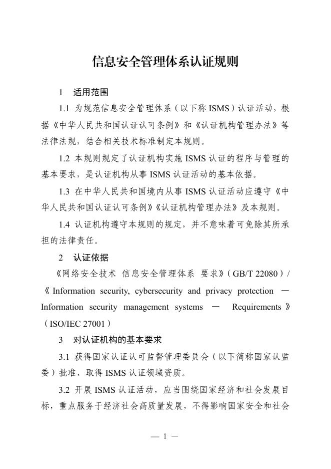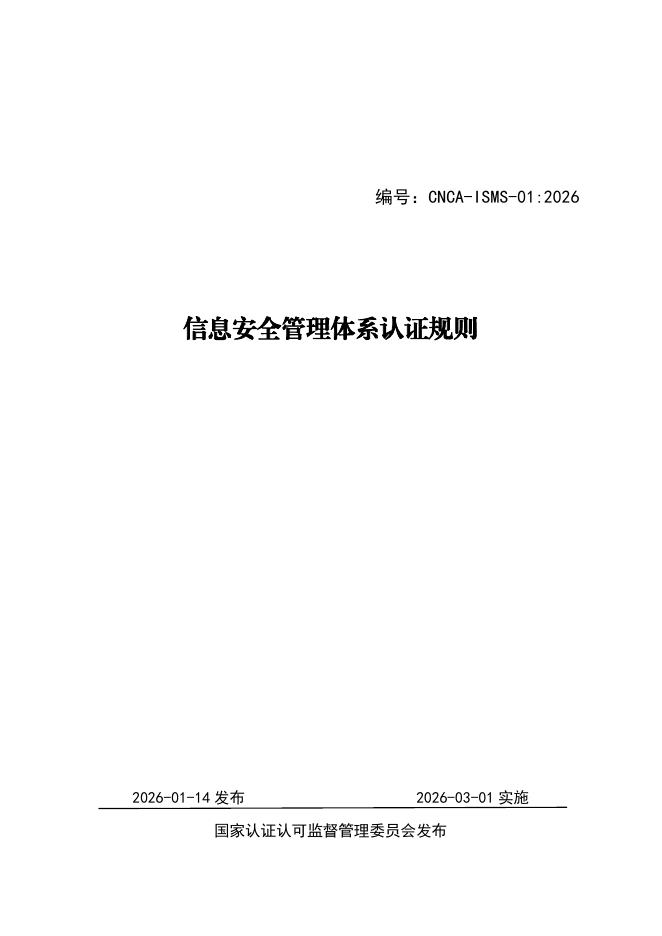 CNCA-ISMS-01:2026 信息安全管理体系认证规则