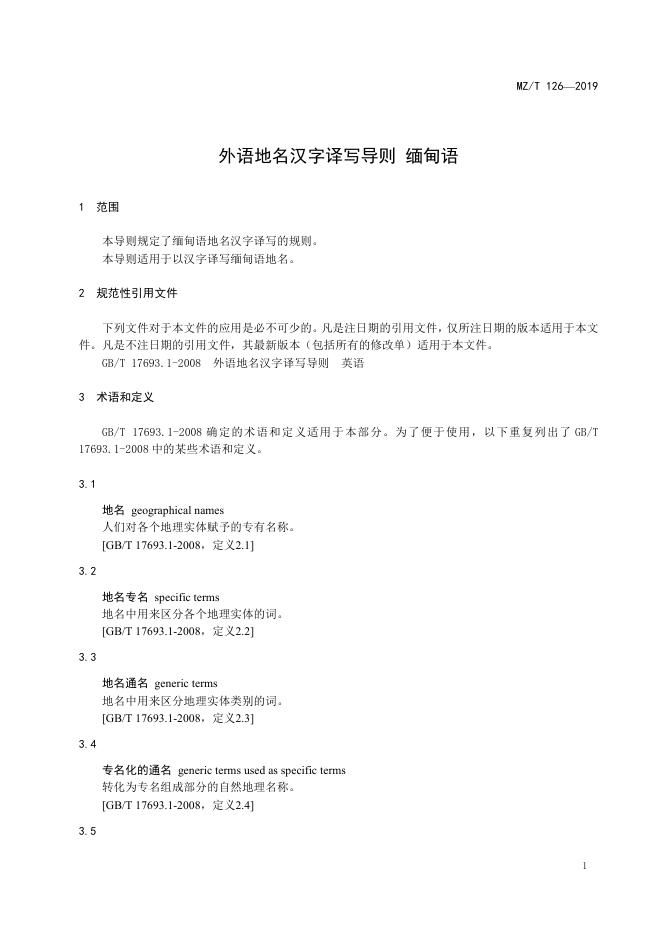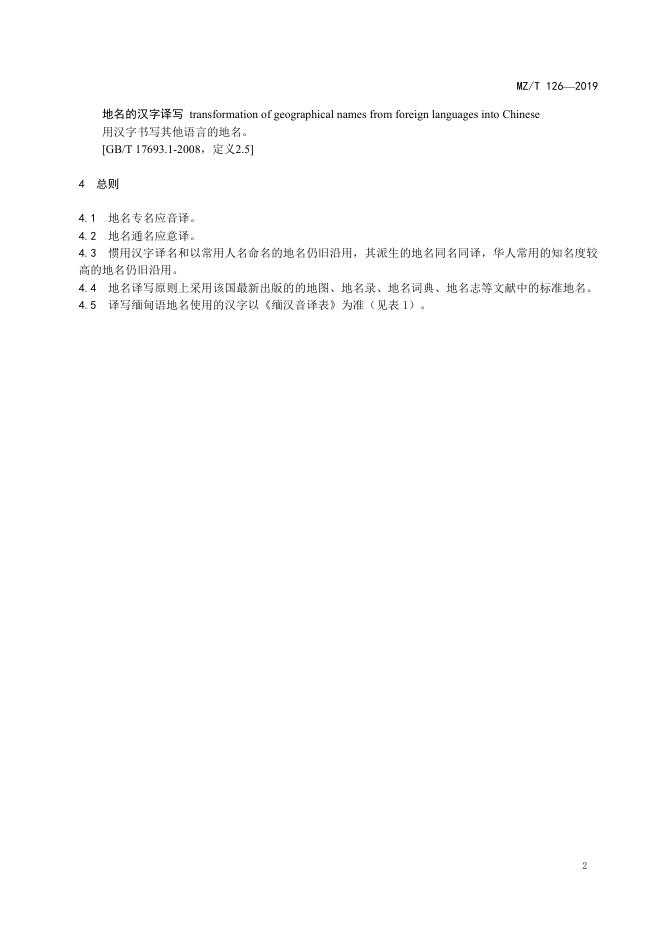 MZ/T 126-2019 外语汉字译写导则:缅甸语