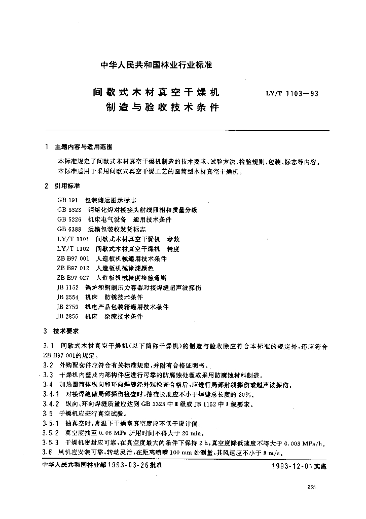 LY/T 1103-1993 间歇式木材真空干燥机 制造与验收技术条件