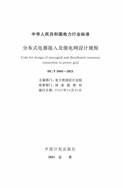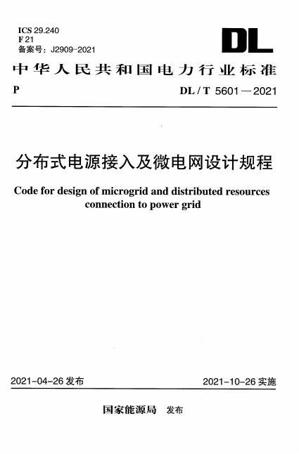 DL/T 5601-2021 分布式电源接入及微电网设计规程