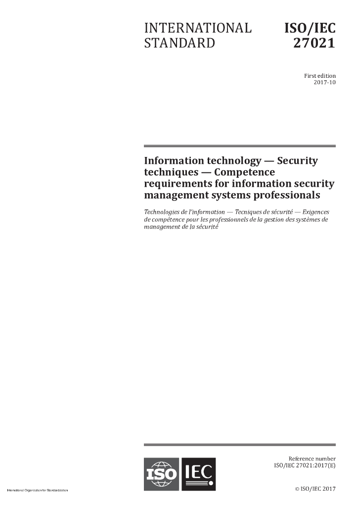 ISO/IEC 27021-2017 信息技术 安全技术 信息安全管理系统专业人员能力要求