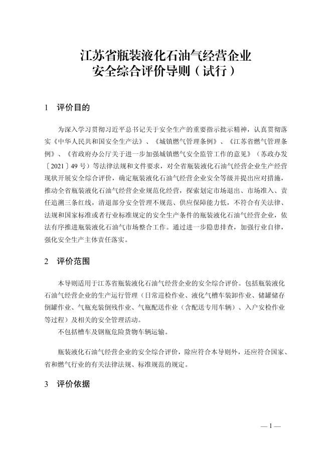 江苏省瓶装液化石油气经营企业安全综合评价导则(试行)